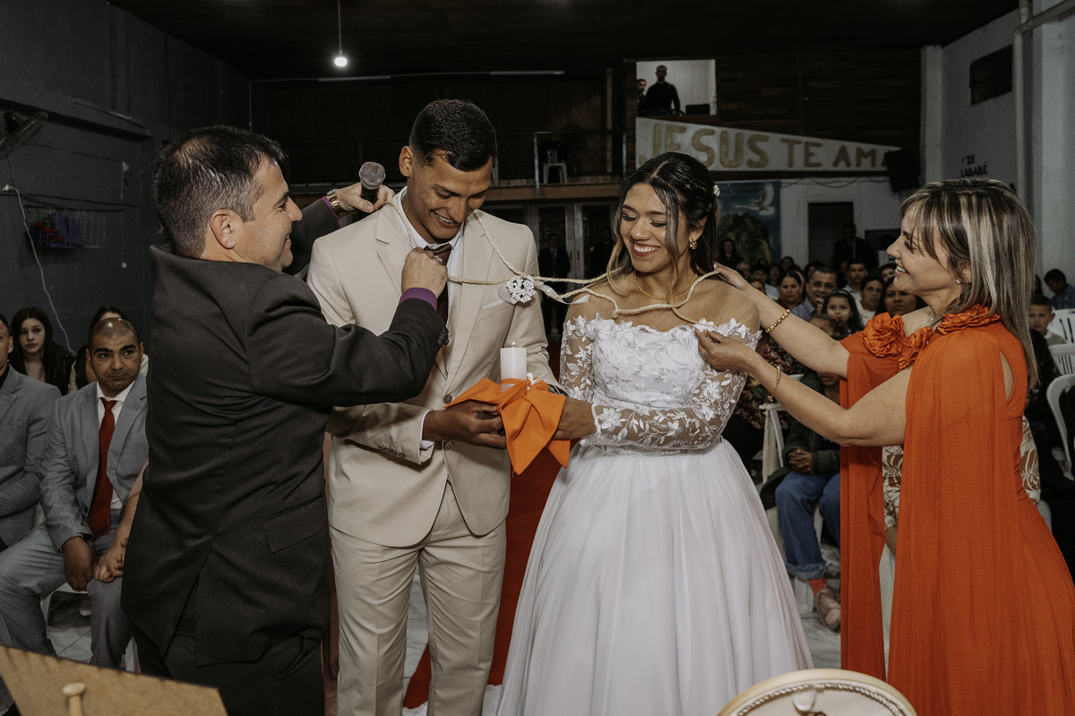 La ceremonia estuvo llena de detalles que hablaban de ellos: el altar decorado con flores cálidas, los gestos de fe que acompañaron cada paso y la energía sincera de quienes estaban allí para celebrar su unión.